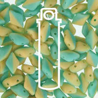 Sold Out - Backorder AvailableStyle: Gem Duo Size: 8mm x 5mm Beads Inner Hole: 0.8mm Product Code: GD8563132-84110 Colour: Matte Duet Turquoise Green Ivory These gorgeous diamond-shaped glass beads have a flat bottom and raised beveled top that resembles a faceted gemstone. With two generously sized holes that run parallel through the points, they are perfect for bead stitching patterns, stringing projects, and more.