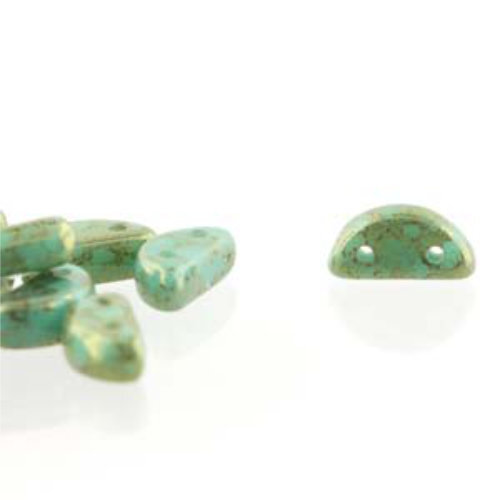 Size: 8mm x 4mm Hole: 0.8mm Colour: HMN84-TQ15495 - Luminous Turquoise Half Moon beads are a flat semi-circular shape with two holes through flat side, they are made from pressed glass for uniformity in shape and size. Half Moon Beads are available in 8mm x 7mm and sold in a 50 bead strand.