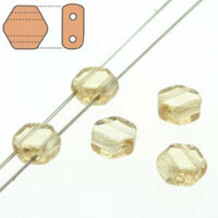 Size: 6mm x 7mm x 3mm Hole: 0.8mm Colour: HC0600030-14413 - Beige Crystal Luster Honeycomb beads are a fun hexagonal shape czech pressed glass two hole bead with guaranteed size and dimensional stability. They are not simply coated crystal but actual colored glass with many coating options. With two generously sized holes that run parallel through the points, they are perfect for bead stitching patterns, stringing projects, and more. These beads are available on a strand containing 30 beads.