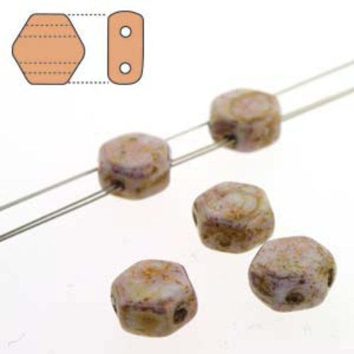 Size: 6mm x 7mm x 3mm Hole: 0.8mm Colour: HC0603000-15695 - Chalk Senegal Brown Honeycomb beads are a fun hexagonal shape czech pressed glass two hole bead with guaranteed size and dimensional stability. They are not simply coated crystal but actual colored glass with many coating options. With two generously sized holes that run parallel through the points, they are perfect for bead stitching patterns, stringing projects, and more. These beads are available on a strand containing 30 beads.