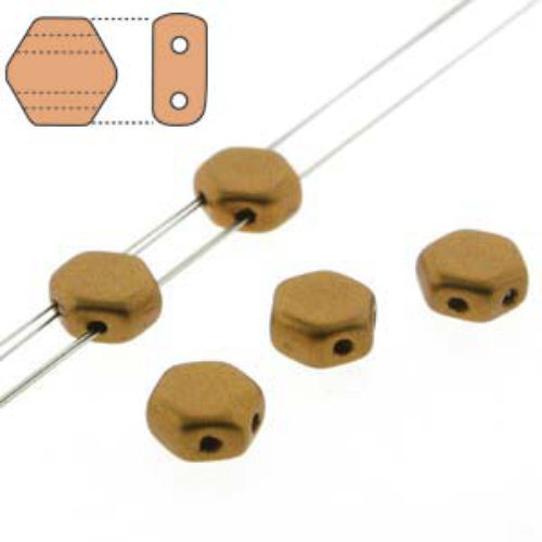 Size: 6mm x 7mm x 3mm Hole: 0.8mm Colour: HC0629415 - Matte Metallic Antique Brass Honeycomb beads are a fun hexagonal shape czech pressed glass two hole bead with guaranteed size and dimensional stability. They are not simply coated crystal but actual colored glass with many coating options. With two generously sized holes that run parallel through the points, they are perfect for bead stitching patterns, stringing projects, and more. These beads are available on a strand containing 30 beads.
