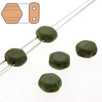 Size: 6mm x 7mm x 3mm Hole: 0.8mm Colour: HC0663030-86805 - Opaque Blue Turquoise Dark Travertine Honeycomb beads are a fun hexagonal shape czech pressed glass two hole bead with guaranteed size and dimensional stability. They are not simply coated crystal but actual colored glass with many coating options. With two generously sized holes that run parallel through the points, they are perfect for bead stitching patterns, stringing projects, and more. These beads are available on a strand containing 30 beads.