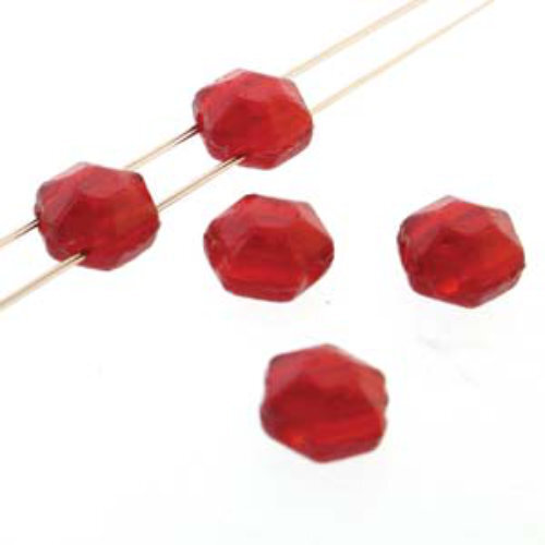 Honeycomb Chiseled Jewel 6mm - HCJ0690080 - Ruby - 30 Bead Strand