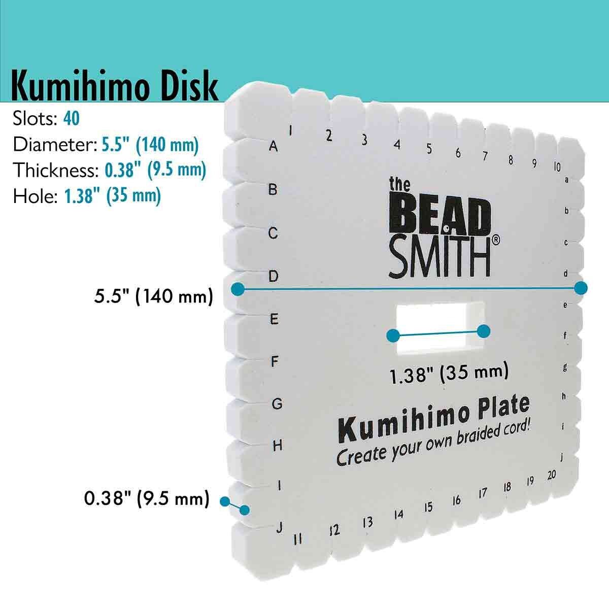 Discover the ancient art of braiding cords otherwise known as Kumihimo in Japanese. The Kumihimo Plate (KD601 KD605) measures 5.5 x 5.5 and is also made of 3/8 dense foam. The plate produces a round or flat braid. With the Kumihimo Plate you ll be able to create beautiful braiding projects quickly! The plate is sturdy and will hold the threads firmly as you braid. Because it is portable you can easily take your projects almost anywhere.