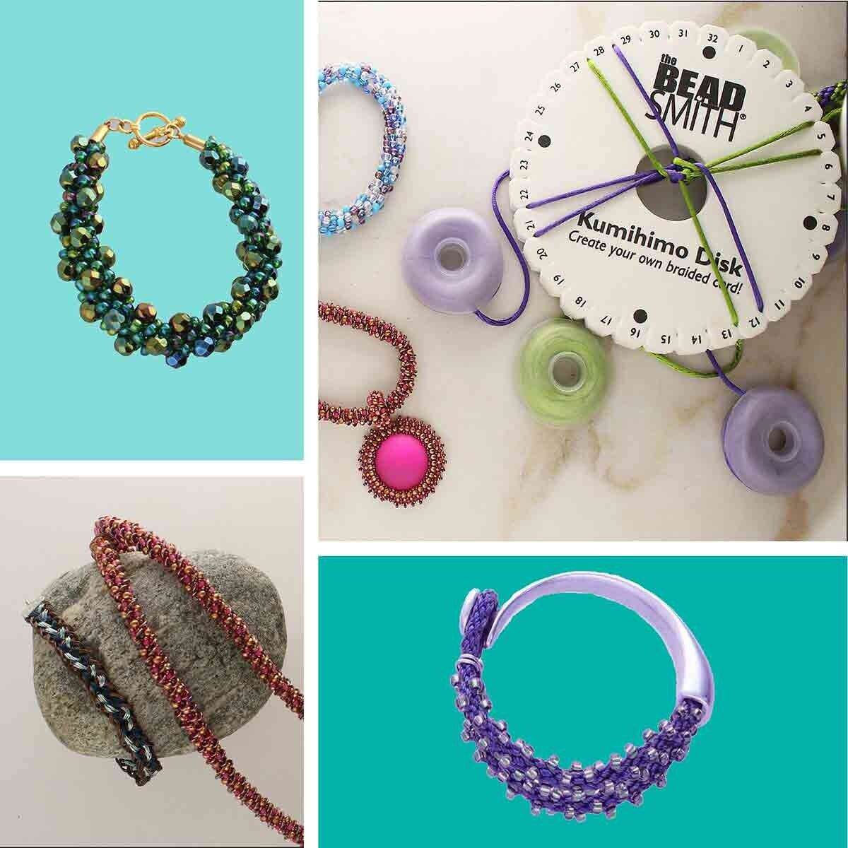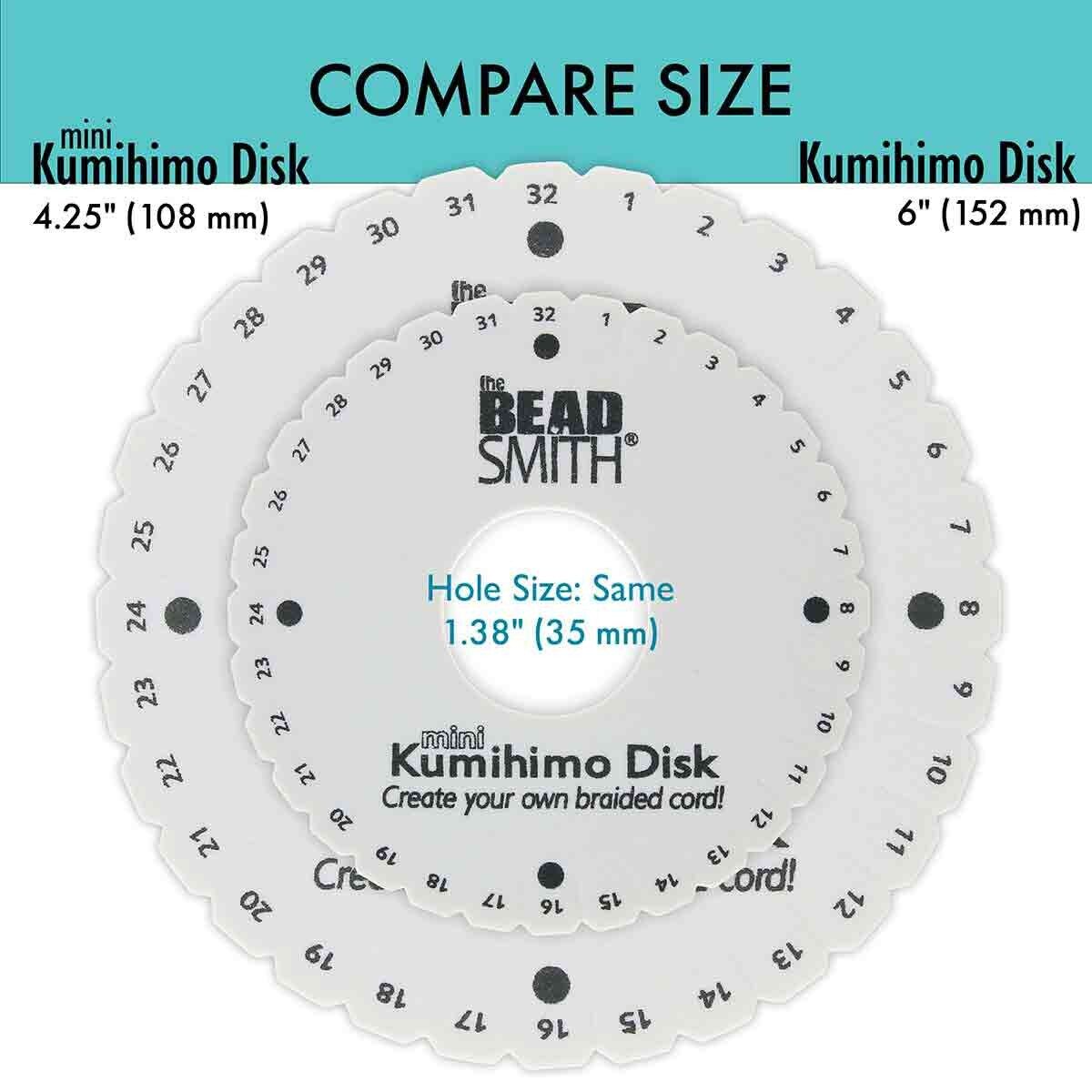 Discover the ancient art of braiding cords, otherwise known as Kumihimo in Japanese. The Kumihimo Disk (KD600 & KD604) are 6" in diameter and made of 3/8" dense foam. The disk creates a rounded braid. With the Kumihimo Disk, you’ll be able to create beautiful braiding projects quickly! The disk is sturdy and will hold the threads firmly as you braid. Because it is portable, you can easily take your projects almost anywhere. Compatible with our Kumi Handle (KDHOLD). **NOW WITH 35MM HOLE**