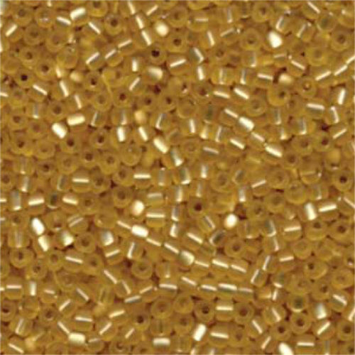 Size: 8/0 Diameter: 3mm x 2mm Hole: 1.1mm Colour: TR8-1102F - Matte Silver Lined Gold Miyuki seed beads from Japan are the highest quality seed beads on the market today. Size 8/0 Miyuki triangle beads are large seed beads with softly rounded corners. These seed beads are also suitable for use in embroidery, for fringe, crochet, spacers beads in jewellery or string as-is for very delicate jewellery. These 8/0 Triangle Seed Beads (TR8) have a 1.1mm hole and are available in 2 Pack Sizes 24gm Tube - containing approximately 736 beads 250gm Bag - containing approximately 7675 beads.