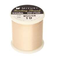 Colour: White Code: MBT-01 Thickness: 330DTEX Pack Size: 50m - Miyuki Nylon Thread is a pre-waxed beading thread perfect for delicate projects and small-hole beads like seed beads. ÊThis fine yet strong beading thread is perfect for techniques that require multiple passes through beads. It is aÊtangle and fray-resistant thread, simple to work with and easily threads onto a needle.