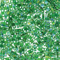 Size: 5mm x 1.5mm x 1.9mm Hole: 0.8mm Colour: QTL0179 - Transparent Green AB Miyuki seed beads from Japan are the highest quality seed beads on the market today. The Tila beads have parallel holes and always stack up nicely because of their uniformity. You will see that they have a front which is very slightly domed, and back which is completely flat. These beads ideal of precision projects where you need to be able to pass your needle through the bead multiple times. For these style of projects pair the beads with threads such as Fireline, WildFire, Power Pro, KO Thread and Nymo. These beads are available in reusable tubes or in bags. 7.2m Tube contains approximately 355-365 Beads 50gm Bag contains approximately 2500 Beads
