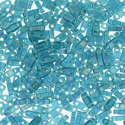 Sold Out - Backorder AvailableSize: 5mm x 1.5mm x 1.9mm Hole: 0.8mm Colour: QTL2405FR - Matte Transparent Teal AB Miyuki seed beads from Japan are the highest quality seed beads on the market today. The Tila beads have parallel holes and always stack up nicely because of their uniformity. You will see that they have a front which is very slightly domed, and back which is completely flat. These beads ideal of precision projects where you need to be able to pass your needle through the bead multiple times. For these style of projects pair the beads with threads such as Fireline, WildFire, Power Pro, KO Thread and Nymo. These beads are available in reusable tubes or in bags. 7.2m Tube contains approximately 355-365 Beads 50gm Bag contains approximately 2500 Beads