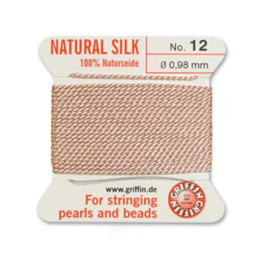 GRIFFIN 100% Natural Silk is made exclusively from the high-grade filament of the silk cocoon. Only this sleek thread has the characteristic lustre and the irresistible natural beauty of pure natural silk.The individual cards have two metres (approx. 79'') of 100% natural thread with a stainless steel needle attached No 12 - 0.98mm - Light Pink Carded Bead Cord 100% Natural Silk