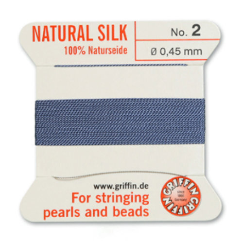 GRIFFIN 100% Natural Silk is made exclusively from the high-grade filament of the silk cocoon. Only this sleek thread has the characteristic lustre and the irresistible natural beauty of pure natural silk.The individual cards have two metres (approx. 79'') of 100% natural thread with a stainless steel needle attached No 2 - 0.45mm - Blue Carded Bead Cord 100% Natural Silk