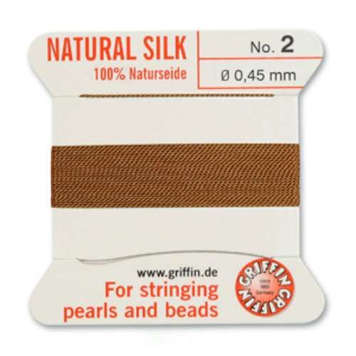 GRIFFIN 100% Natural Silk is made exclusively from the high-grade filament of the silk cocoon. Only this sleek thread has the characteristic lustre and the irresistible natural beauty of pure natural silk.The individual cards have two metres (approx. 79'') of 100% natural thread with a stainless steel needle attached No 2 - 0.45mm - Cornelian Carded Bead Cord 100% Natural Silk