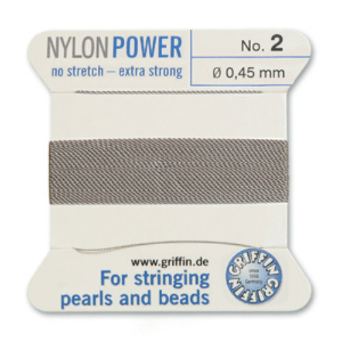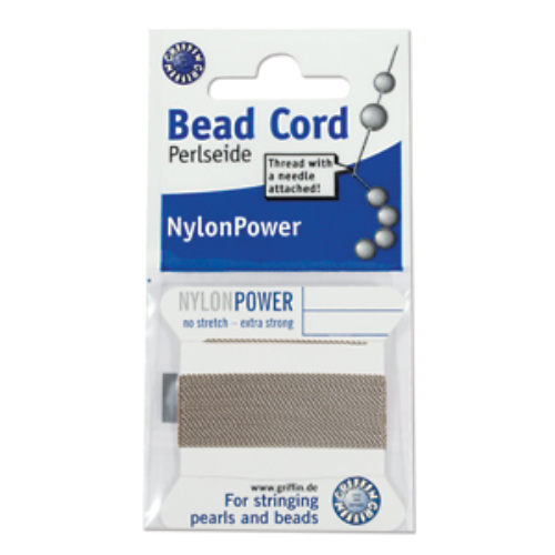 In StockGRIFFIN NylonPower is a strong, specially treated nylon with double the tensile strength of conventional nylon. NylonPower Bead Cord stretches only about 3-4% under tension and will return to its original length when released. This property is a great advantage when beading, because knots can be placed very firmly and permanently. Apart from the resilient characteristics of this thread, GRIFFIN NylonPower also possesses a smooth surface and an unsurpassed brilliance. GRIFFIN PowerNylon: a modern alternative to traditional 100% Natural Silk thread. No 2 - 0.45mm - Grey Carded Bead Cord Nylon Power