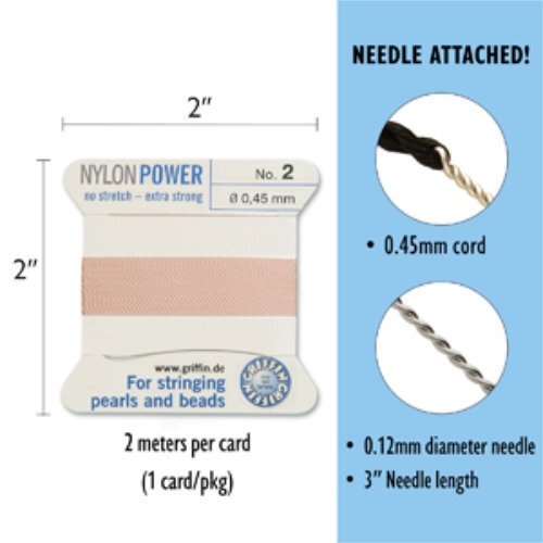 GRIFFIN PowerNylon: a modern alternative to traditional 100% Natural Silk thread. No 2 - 0.45mm - Light Pink Carded Bead Cord Nylon Power