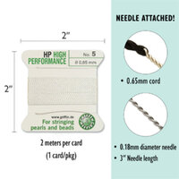 GRIFFIN High Performance consists of high-tech fibers with an especially dense molecular structure. Its tensile strength is scarcely believable: even the thread with the smallest diameter cannot be torn apart by hand. These fibers are 15 times stronger than steel and therefore the strongest fibers in the world. The result is absolute safety for your jewelry. GRIFFIN High Performance Bead Cord is as smooth as silk, pliable and excellent to work with. Because it does not stretch, necklaces and chains do not lengthen with time. The high-tech solution: extremely strong with incredible tensile strength. No 5 - 0.65mm - White Carded Bead Cord High Performance