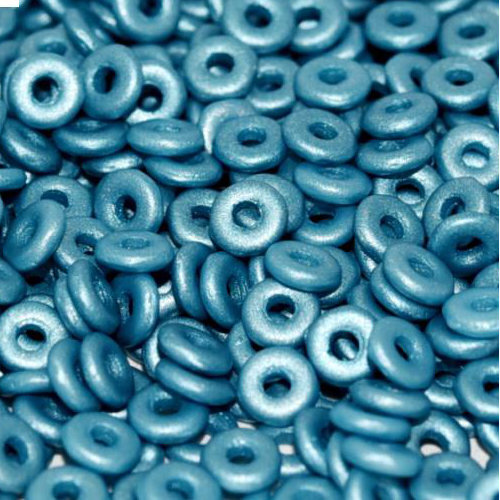 Size: 3.8mm x 1mm Hole: 1.3mm Colour: Alabaster Metallic Aqua - 02010-29436 O Beads are a Mini Flattened Czech Glass Ring, available in a range of colours and finish. These beads are sold in a 5gm bag (approx 170 beads) or 50gm bag (approx 1700 beads).