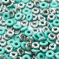 Size: 3.8mm x 1mm Hole: 1.3mm Colour: Turquoise Green Chrome - 63130-27401 O Beads are a Mini Flattened Czech Glass Ring, available in a range of colours and finish. These beads are sold in a 5gm bag (approx 170 beads) or 50gm bag (approx 1700 beads).