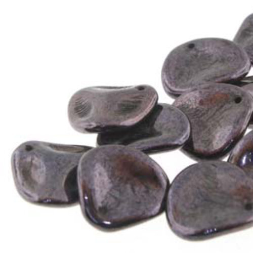 Size: 14mm x 13mm Hole: 0.8mm Colour: 790524368051 - Jet Travertine Blue Petal beads are Czech Glass Beads sold on a strand. The top side of the petal bead presents a triangular shape that curves inward, while the back or bottom of the bead curves outward. The indentations and uneven surface gives the Petal beads a more realistic look and adds depth to the bead. Petal beads are beautiful as a stand alone bead in a simple set of earrings, or as a lovely touch to intricate beadweaving projects. Petal Beads are available in 14mm x 13mm and 8mm x 7mm.