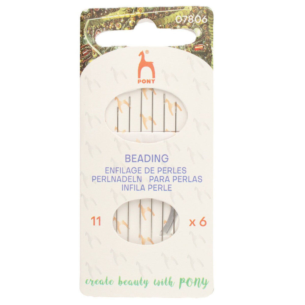 Sold Out - Backorder AvailablePony Beading Needles - Size 11 - 6 Pack with Needle Threader Item Code: PBN116T When you are making a beaded necklace, bracelet, or set of earrings, The Beadsmith has got you covered! Pony beading needles are the perfect tool to have on hand. Often referred to by beaders as "longs”, these fine needles and very stiff, making them perfect for passing through rows of beads or even embroidery projects. The eye of the needle is the same width as the rest of the needle, keeping thread in place while working—even during multiple passes through a bead. Pony Brand Beading Needles are sized according to English beading needle standards, which are renowned for quality and reliability. In this package you will get steel wire needles. This needle is great for loom weaving as well as off-loom stitching such as peyote, brick, herringbone and netting. They are fantastic to string seed beads, pearls and sequins. This essential supply is perfect for beginner or expert jewelry makers alike because of their versatility and ease of use. Create durable and high-quality pieces for yourself and others. Handmade beaded jewelry pieces make great gifts for friends or loved ones for birthdays, Christmas, weddings, graduations, or other special occasions. Add these needles to your crafting supplies today and unlock your artistic talents.
