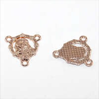 A zinc alloy rosary centre with the Virgin Mary on one side, this piece has been plated in rose gold.