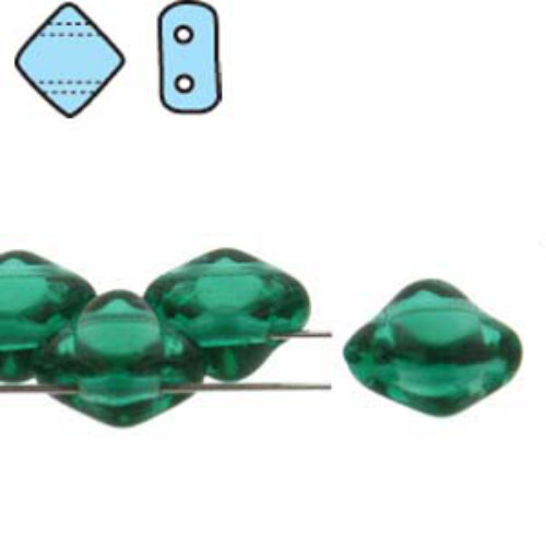 Silky Beads are a square bead with a ridge running along the diagonal on one side and flat on the other - giving you the choice to use either side in your design. The silky beads are a czech pressed glass two hole bead with guaranteed size and dimensional stability. With two generously sized holes that run parallel through the bead, they will nestle together beautifully or can be mixed with other 2 hole and single hole beads, making then perfect for bead stitching patterns, stringing projects, and more.