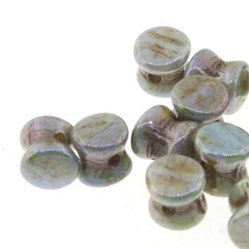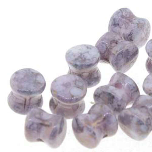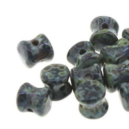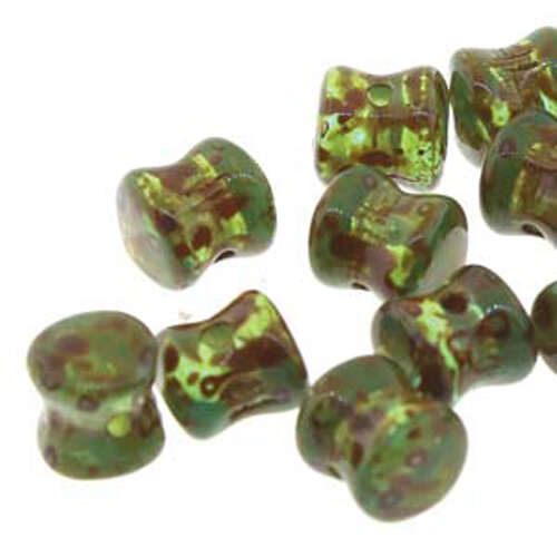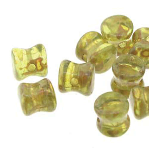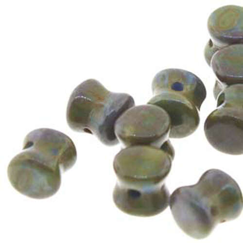 These small, cylindrical beads are slightly pinched in the middle, giving them a distinctive hour glass shape. The stringing hole runs through the pinched middle, so these beads stack up nicely in designs and fit together well. Layer them with other beads in bead weaving and stringing projects.