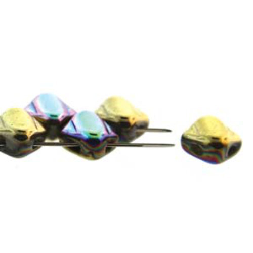 Size: 6mm x 6mm x 3mm Hole: 0.8mm Colour: 790524752164 - Crystal Twinkle Amber Silky Beads are a square bead with a ridge running along the diagonal on one side and flat on the other - giving you the choice to use either side in your design. The silky beads are a czech pressed glass two hole bead with guaranteed size and dimensional stability. With two generously sized holes that run parallel through the bead, they will nestle together beautifully or can be mixed with other 2 hole and single hole beads, making then perfect for bead stitching patterns, stringing projects, and more. Silky Beads are available in 5mm, 6mm and 6mm Table Cuts.