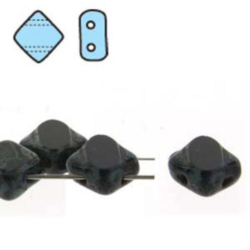 Sold Out - Backorder AvailableSize: 6mm x 6mm x 3mm Hole: 0.8mm Colour: 790524388431 - Jet Travertine Silky Beads are a square bead with a ridge running along the diagonal on one side and flat on the other - giving you the choice to use either side in your design. The silky beads are a czech pressed glass two hole bead with guaranteed size and dimensional stability. With two generously sized holes that run parallel through the bead, they will nestle together beautifully or can be mixed with other 2 hole and single hole beads, making then perfect for bead stitching patterns, stringing projects, and more. Silky Beads are available in 5mm, 6mm and 6mm Table Cuts.