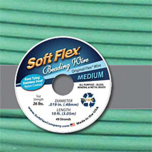 Colour: Fluorite Code: SFW01910FLU Thickness: .019 in (0.48 mm) Pack Size: 10ft / 3m - Soft Flex Wire is a superior beading wire that was created by beaders for beaders. It is constructed of either 21 or 49 micro woven staineless steel wires that are braided together and then nylon coated. Soft Flex Wire is marine quality and can be worn in both salt and fresh water. Soft Flex is availabe in 3 diametes and 23 colors. Made in the USA.
