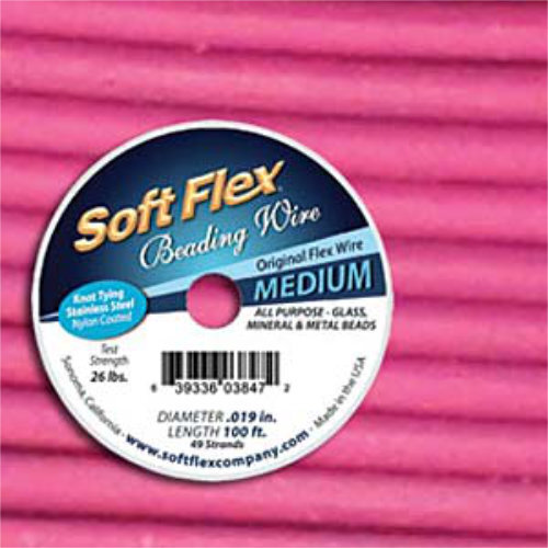 Colour: Pink Tourmaline Code: SFW019100PKT Thickness: .019 in (0.48 mm) Pack Size: 100ft / 30.5m - Soft Flex Wire is a superior beading wire that was created by beaders for beaders. It is constructed of either 21 or 49 micro woven staineless steel wires that are braided together and then nylon coated. Soft Flex Wire is marine quality and can be worn in both salt and fresh water. Soft Flex is availabe in 3 diametes and 23 colors. Made in the USA.