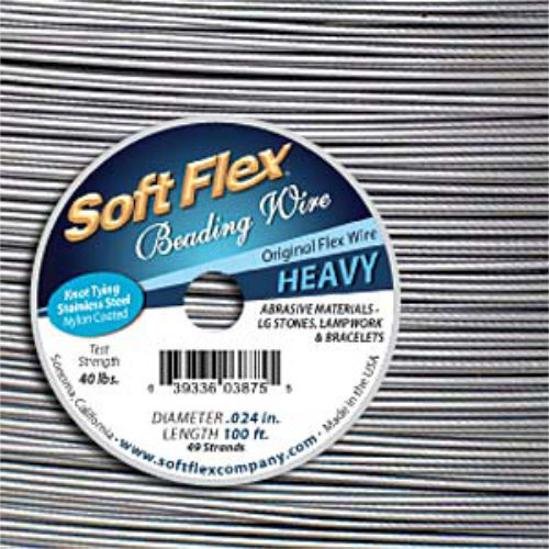 Colour: Satin Silver Code: SFW024100SLV Thickness: .024 in (0.61 mm) Pack Size: 100ft / 30.5m - Soft Flex Wire is a superior beading wire that was created by beaders for beaders. It is constructed of either 21 or 49 micro woven staineless steel wires that are braided together and then nylon coated. Soft Flex Wire is marine quality and can be worn in both salt and fresh water. Soft Flex is availabe in 3 diametes and 23 colors. Made in the USA.