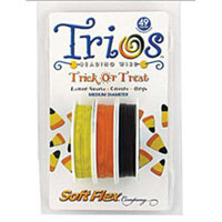 Colour: Trick or Treat Code: TRI019TOT Thickness: .019 in (0.48 mm) Pack Size: 10ft / 3m - Soft Flex Trios Wire Sets are comprised of three 10' (3m) spools of Soft Flex brand beading wire. Trios Wire Sets reflect our passion for gemstones and our love of color. Made in the USA. Trick or Treat Trios contains a ten foot spool of each of these colors - Black Onyx Yellow Lemon Quartz and Citrine