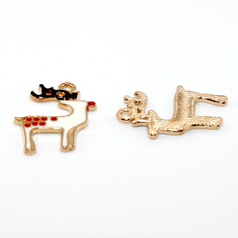Spotted Reindeer Enamel Charm - Pale Gold - 2 Pieces