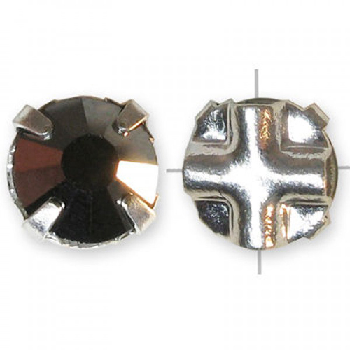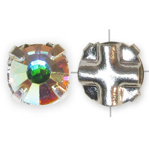 Rose Montee crystals are rhinestones mounted in a pronged metal setting. Two channels cross in the back of the metal setting. This makes it easy to string or stitch the rhinestones securely in two directions.