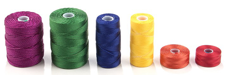 Ideal for kumihimo and macrame with 6/0 seed beads and beads with a 1mm hole and larger. This is a 0.9mm twisted nylon multi-filament cord. Each spool contains 35 yards / 32 metres