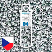 Style: Super Duo Size: 2.5mm x 5mm Beads Inner Hole: 0.8mm Product Code: DU0500030-27000CS Colour: Crystal Full Labrador Super Duos are a Czech pressed glass two hole bead with guaranteed size and dimensional stability. They are not simply coated crystal but actual colored glass with many coating options: Transparent, Opaque, Matte, Color Lined, Picasso, Luster, AB Coating & Magic Line. With two generously sized holes that run parallel through the points, they are perfect for bead stitching patterns, stringing projects, and more. These beads are available in reusable tubes or in bags. 22.5gm tube contains approximately 290 - 310 beads 100gm bag contains approximately 1340 - 1360 beads These beads have been treated with Czech Shield - a transparent surface treatment for Czech Beads designed to increase colour durability and protection to Czech Bead Coatings.