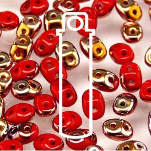 Style: Super Duo Size: 2.5mm x 5mm Beads Inner Hole: 0.8mm Product Code: DU0593200-27101 Colour: Coral Red Capri Gold Super Duos are a Czech pressed glass two hole bead with guaranteed size and dimensional stability. They are not simply coated crystal but actual colored glass with many coating options: Transparent, Opaque, Matte, Color Lined, Picasso, Luster, AB Coating & Magic Line. With two generously sized holes that run parallel through the points, they are perfect for bead stitching patterns, stringing projects, and more. These beads are available in reusable tubes or in bags. 22.5gm tube contains approximately 290 - 310 beads 100gm bag contains approximately 1340 - 1360 beads
