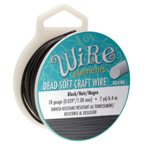 Tarnish Resistant Soft Temper Black 18 Gauge Round Wire Permanently Colored Non-tarnish Craft Wire. Great for all sorts of projects, including wire crocheted necklaces, bracelets, earrings, and rings. Dead-soft wire is extremely flexible which makes it ideal for creating flowing curves, shapes, and spirals, as well as for wrapping stones. Because of this flexibility, it can also be easily unbent, so when it is used to create an element like a clasp, which will be subjected to high stress, it should be hardened after shaping. This can be done by placing it on an anvil or bench block and striking it with a nylon-jaw hammer. "