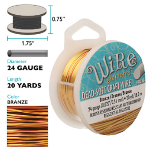 Tarnish Resistant Soft Temper Bronze 24 Gauge Round Wire Permanently Colored Non-tarnish Craft Wire. Great for all sorts of projects, including wire crocheted necklaces, bracelets, earrings, and rings. Dead-soft wire is extremely flexible which makes it ideal for creating flowing curves, shapes, and spirals, as well as for wrapping stones. Because of this flexibility, it can also be easily unbent, so when it is used to create an element like a clasp, which will be subjected to high stress, it should be hardened after shaping. This can be done by placing it on an anvil or bench block and striking it with a nylon-jaw hammer. "