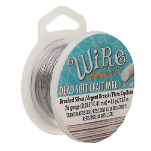 Tarnish Resistant Soft Temper Brush Silver 26 Gauge Round Wire Permanently Colored Non-tarnish Craft Wire. Great for all sorts of projects, including wire crocheted necklaces, bracelets, earrings, and rings. Dead-soft wire is extremely flexible which makes it ideal for creating flowing curves, shapes, and spirals, as well as for wrapping stones. Because of this flexibility, it can also be easily unbent, so when it is used to create an element like a clasp, which will be subjected to high stress, it should be hardened after shaping. This can be done by placing it on an anvil or bench block and striking it with a nylon-jaw hammer. "