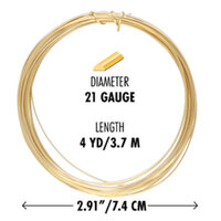 Tarnish Resistant Soft Temper Gold 21 Gauge Half Round Wire Permanently Colored Non-tarnish Craft Wire. Great for all sorts of projects, including wire crocheted necklaces, bracelets, earrings, and rings. Dead-soft wire is extremely flexible which makes it ideal for creating flowing curves, shapes, and spirals, as well as for wrapping stones. Because of this flexibility, it can also be easily unbent, so when it is used to create an element like a clasp, which will be subjected to high stress, it should be hardened after shaping. This can be done by placing it on an anvil or bench block and striking it with a nylon-jaw hammer. "