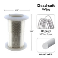 Tarnish Resistant Soft Temper Silver 30 Gauge Round Wire Permanently Colored Non-tarnish Craft Wire. Great for all sorts of projects, including wire crocheted necklaces, bracelets, earrings, and rings. Dead-soft wire is extremely flexible which makes it ideal for creating flowing curves, shapes, and spirals, as well as for wrapping stones. Because of this flexibility, it can also be easily unbent, so when it is used to create an element like a clasp, which will be subjected to high stress, it should be hardened after shaping. This can be done by placing it on an anvil or bench block and striking it with a nylon-jaw hammer. "