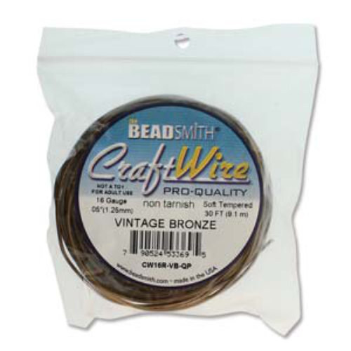 Tarnish Resistant Soft Temper Vintage Bronze 16 Gauge Round Wire Permanently Colored Non-tarnish Craft Wire. Great for all sorts of projects, including wire crocheted necklaces, bracelets, earrings, and rings. Dead-soft wire is extremely flexible which makes it ideal for creating flowing curves, shapes, and spirals, as well as for wrapping stones. Because of this flexibility, it can also be easily unbent, so when it is used to create an element like a clasp, which will be subjected to high stress, it should be hardened after shaping. This can be done by placing it on an anvil or bench block and striking it with a nylon-jaw hammer. "