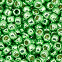 Colour - PermaFinish - Galvanized Green Apple Code - TR-11-PF587 Size: 11/0 - Approximately 2.2mm in diameter hole fits up to 22 gauge wire and stringing material (.025 inch). Toho's precision-sized round seed beads are manufactured with a slightly larger hole than other seed beads, making them the bead of choice for advanced bead weaving techniques that require multiple passes of thread through each bead. Toho translates to "Eastern Treasure" in English. Japanese seed beads are favored for their high quality, precision crafting, and uniformity in size. Toho™ beads come in a vast array of colors and finishes that are sure to inspire your bead weaving projects. The 13gm container contains around 1360 beads. We can special order in 100gm bags which contain around 10,500 beads or 250gm bags which contain around 26,300 beads - please contact the store for details on how to order.