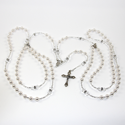 Wedding Lazo (lasso) Rosary Beads - Crystal and Pearl - Silver Plated